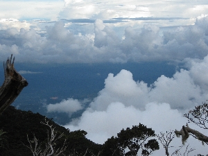 Although our little room at the Grace Hostel was snug and comfortable, Jo and I – especially her – had a roughish night. I was still being plagued by my ridiculously colourful work dreams. In Jo’s case, it was due to a bad mix of anxiety about the climb and a mushy tummy. She needn’t have worried about the ascent, though. Both of the girls did magnificently today; it was me who was slow and sick. The altitude kicked in at around the 2 km mark (~2300 m) and by the 4 km milestone (~2700 m) I was in the depths of black despair. I can’t write much about the ascent after that; all I can really recall is a series of impossible staircases, one after the other. My heart raced the whole time we were moving, I gasped constantly, and although, oddly, I didn’t actually feel tired, the strength simply left my arms and legs, leaving only a strange sense of betrayal. My guts turned to jelly and at one stage I even had to blunder off the track and into the bushes for a dysenteric crap. So much for leaving only footprints. The clothes we wore were much too hot. Everything we’d read prior to the trip, including the excellent Lonely Planet book, had warned of the cold. But, in fact, it was 10°C or so; much the same as we’d left behind in Wellington, just a few days before, and I walk around in that wearing only a business shirt and trousers, everyday. I can’t vouch for the summit, because I didn’t get there, but to reach Laban Rata, at least, all anyone needs is a tee-shirt, shorts and trainers. If you’re precious about wet clothes, take an umbrella. Raincoats are too hot. We survived on 2 litres of water between the three of us, but it wasn’t quite enough. |