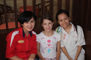 Saturday, 10 July 20100815: Our last outing with Mishi and Rachel this morning; quite a long ramble over a couple of trails and back across the canopy walkway. We crossed a bridge in the company of a column of termites that were also crossing the river, and of course there were plenty of opportunities to stop for the helicopter game. 1330: The trip back to Lahad Datu seemed both longer than the trip in, and bumpier, though I daresay it was neither. Bex sat with Rachel, who was headed home for the weekend, and they chatted away like a couple of old mates until they both fell asleep on one-another’s shoulders. We eventually arrived back at the depot, where our rental was sitting ready, right outside, and one of the staff promptly handed me the key. I took a last photo of Rachel with the girls before we, rather sadly, got in and drove away. Back at the Perdana, our host moved his Merc to give me a park directly across from the hotel entrance, and once more we were happily ensconced in the room at the end of the fourth floor hallway. We made a brief foray to the Guardian to buy, among other treasures, some long overdue nail clippers, then bought some buns and pastries at the bakery around the corner. While everything looked familiar enough, there, we discovered too that nothing was quite as it seemed.... We slept three-up again, but this time the cold draft from the aircon unit, on the wall directly above me, kept me cold and sleepless most of the night. Dunno why. It was the same as last time. |