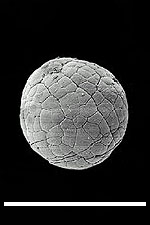 (4) (5) ![]() Fig. 4: Reproduction of fig. 1A from Bengtson & Zhao 1997, a SEM image depicting a suggested metazoan embryo – possibly Olivooides multisulcatus – at approximately the 256-cell stage. Sample is NGMC (National Geological Museum of China) 9351 from the basal Cambrian Dengying Formation exposed in the Shizhonggou section, Shaanxi Province, China; scale is 500μm. Fig. 5: Reproduction of fig. 1K from Bengtson & Zhao 1997, a SEM image of the cnidarian Olivooides multisulcatus. Sample is CAGS (Chinese Academy of Geological Sciences) 32372, also from the Dengying Formation exposed in the Shizhonggou section. The length is about 1.8 mm. |