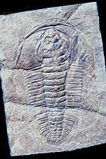 (6) Fig. 6: Parvancorina minchami – A candidate Ediacaran arthropod, possibly a trilobite (see Fortey et al. 1996). In this scenario, the central axial ridge and the strongly arched anterior ‘lobes’ may be analogous to the midgut and gastric diverticulae. The scale bar is in centimetres. [Image and interpretation courtesy of Chris Nedin, Department of Industry, Science and Resources, Canberra.] Fig. 7: Redlichia (Hunanolenus) chinensis – Cambrian. Specimen from Henan Province, China. Length approximately 6 cm. [Original image.] |